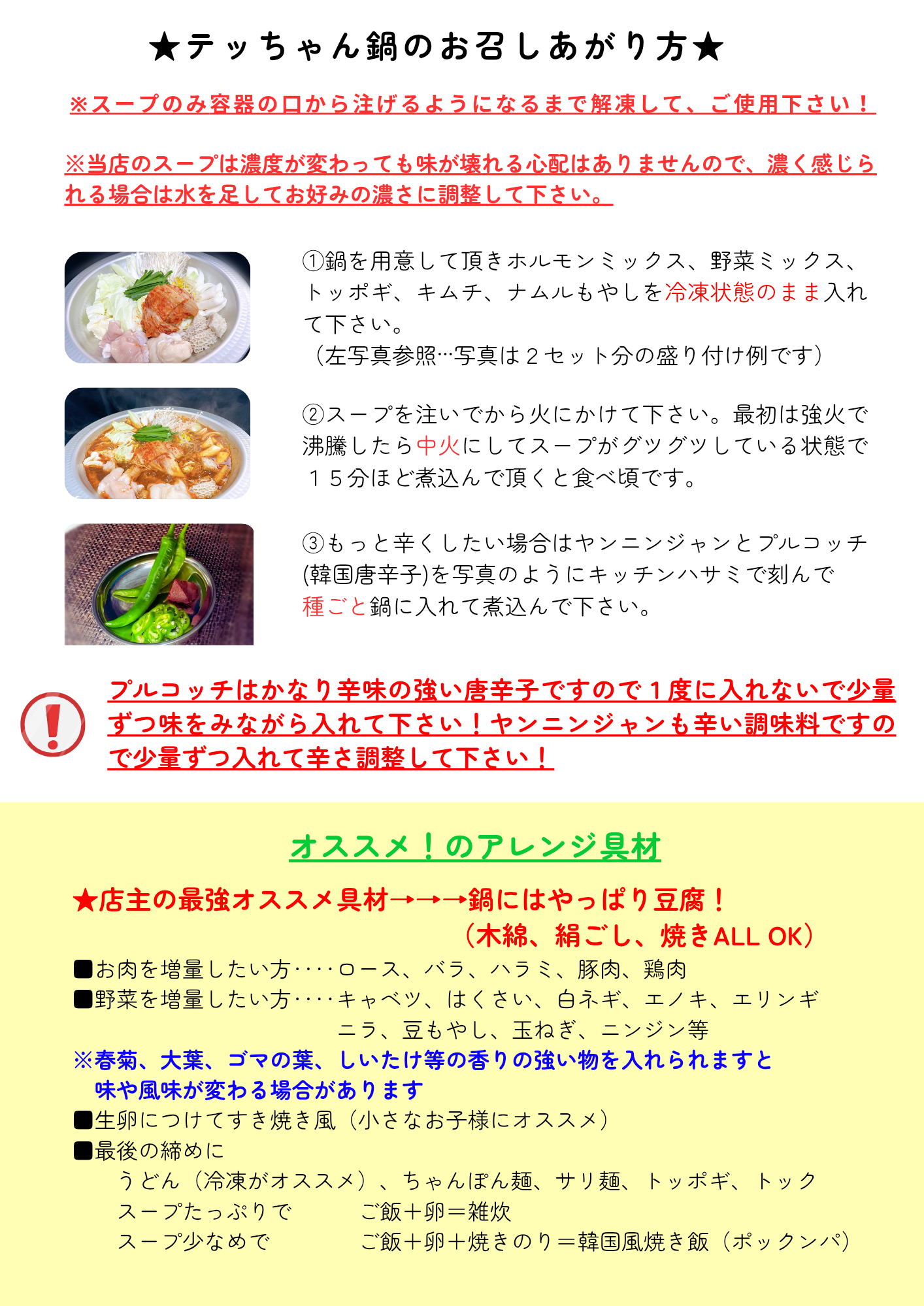 ↓写真のてっちゃん鍋の作り方の説明書も同梱致します。